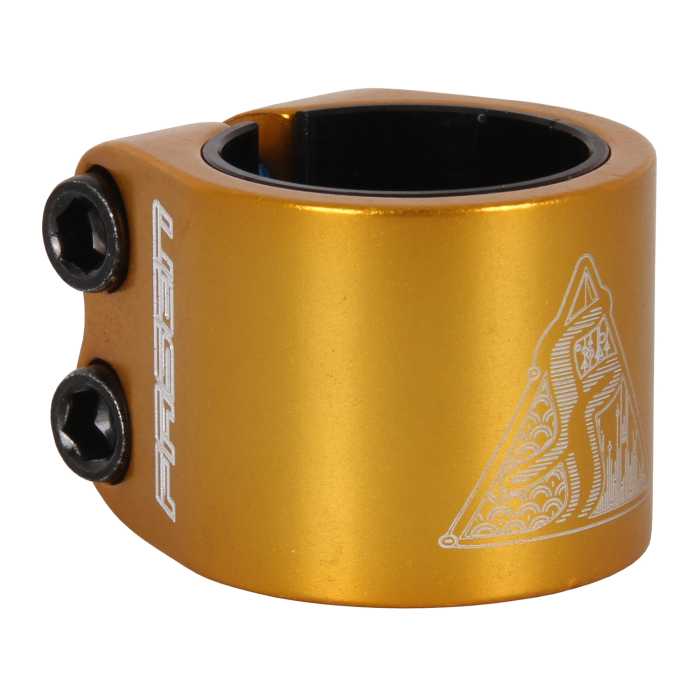 Use this clamp to Fasen on your scooter bars! This Fasen 2 Bolt Double Scooter Collar Clamp is compatible with IHC or HIC compression and comes complete with the Fasen logo etched into the front!