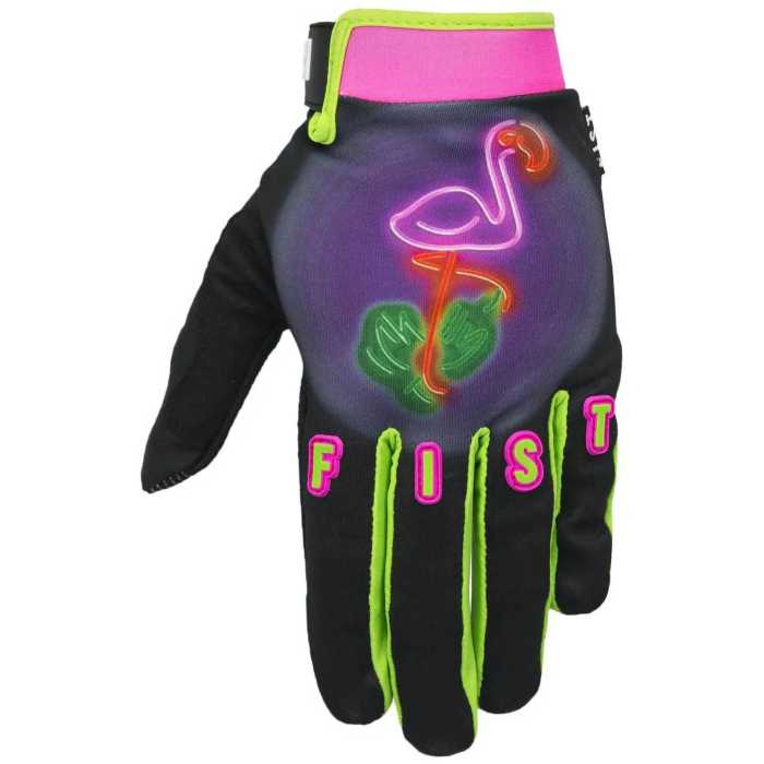 Flamboyant Flamingos. That's it. The connection between you and your bars, there is nothing more important than feel. Sublimated four-way stretch twill spandex upper paired with a single layer Clarino palm make for the best fit on the market. Less is more with this Minimalistic multiple use glove. Taking that all-important Insta pic or punching out a quick text has never been easier on the track or trails with conductive thread in the index finger and thumb.