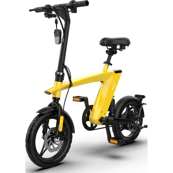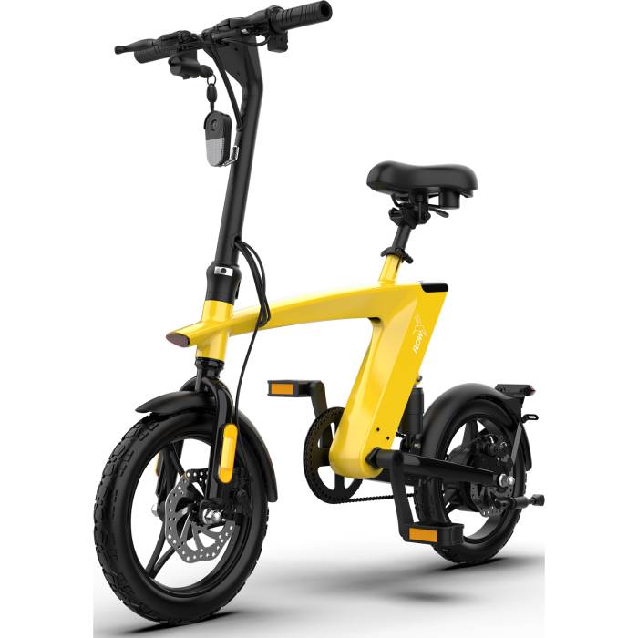 The Flow District 5 Electric Bike is a stylish electric bike with a modern, compact and robust design featuring spring suspension for added comfort and safety. Coming in “Electric Blue” and “Sunbeam Yellow”, the Flow District 5 weighs in at only 18kgs, has a 250W motor, a top speed of 25km/h and a max range of 60km from a single charge. The battery pack slides out of the frame and provides another level of convenience; allowing you to charge the battery on-the-go, avoiding the need for a power source where its parked.