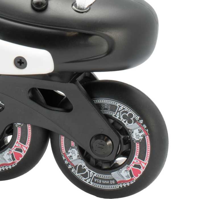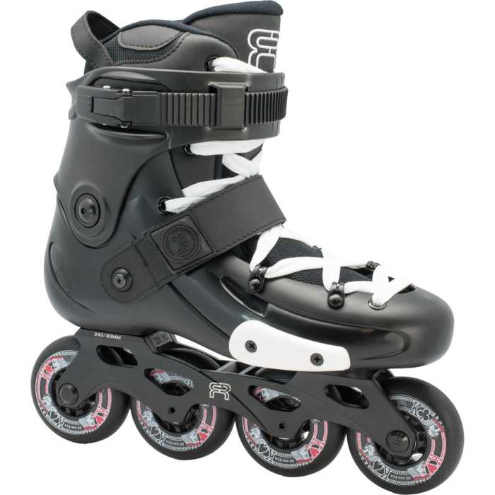 The FR X 80 boot is mounted upon a new X2R 243mm black frame with the wheel of choice for freeride skaters everywhere; the FR Street Kings wheels.