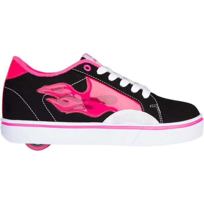 Hot new Heelys Fire CB shoes feature a low-top canvas trainer style with full lace closure for a secure fit, a padded collar and tongue for comfort, as well as a durable rubber sole.