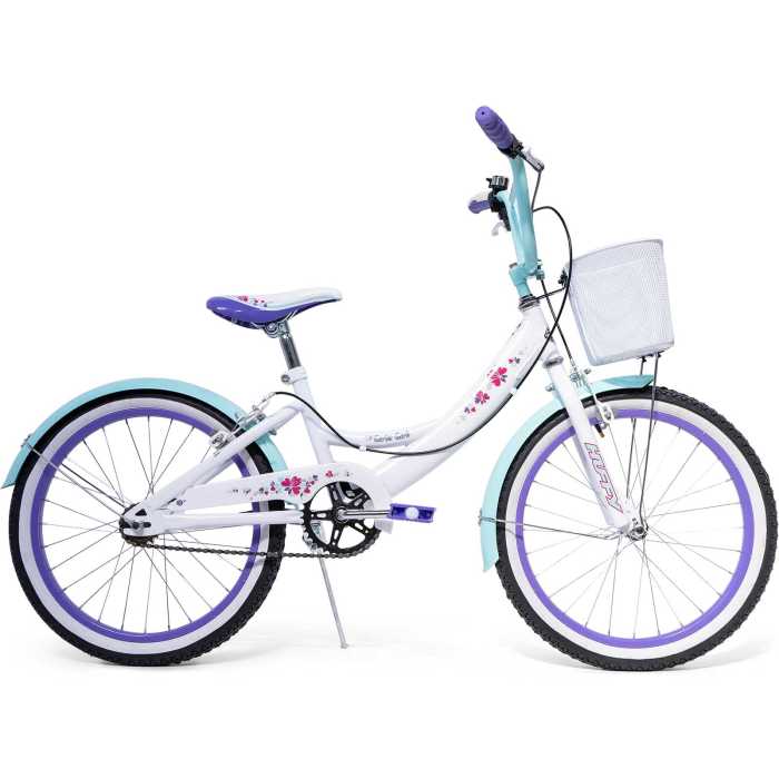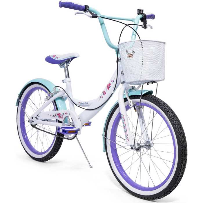 Huffy presents a bike fun to ride with a fun design. The Huffy Girly Girl bike is no exception. The bike features floral decorations on the padded seat, chainguard, and frame graphics for a coordinated look. Even the front handlebar basket adds the timeless design of the bicycle.