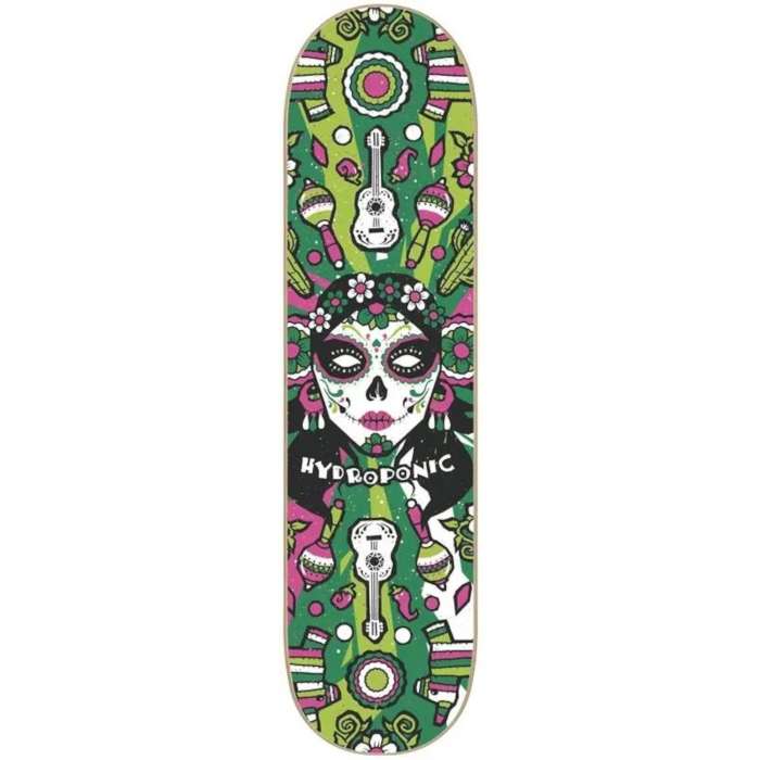 Hydroponic Mexican Skull 2.0 Skateboard Deck - Green Catrina 8"