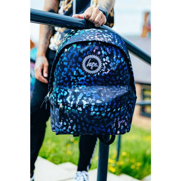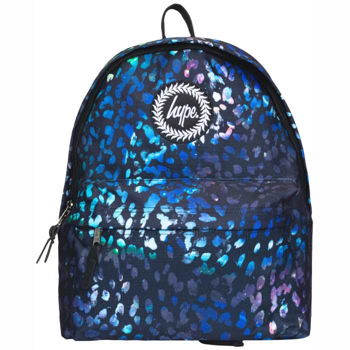The HYPE gradient finger paint backpack is designed in Hypes’ signature fade print in a blue, purple and grey colour palette. With a finger paint-inspired design with a shimmer element. With the iconic HYPE crest badge, front pocket and embossed zip pullers. This backpack measures at 42cm x 30cm x 12cm, creating the perfect size to transport your goods from home to school and school to home. The straps offer supreme comfort with just the right amount of padding you need from your new backpack. Wipe clean only.