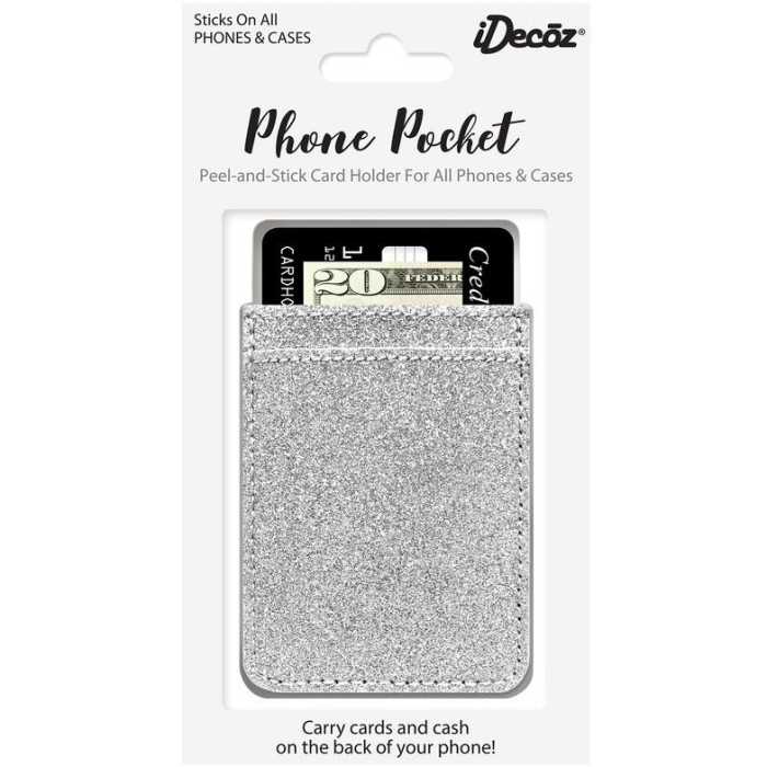The iDecoz Phone Pocket is a peel-and-stick card holder that adheres to the back of all phones and cases. The Phone Pocket has three card slots for holding your cards and cash, and is the best way to carry your essentials on the go!