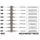 The new Independent Mid trucks feature a lower profile with a 52mm tall hanger for an optimal contact point angle on your nose and tail for all-around street skating.