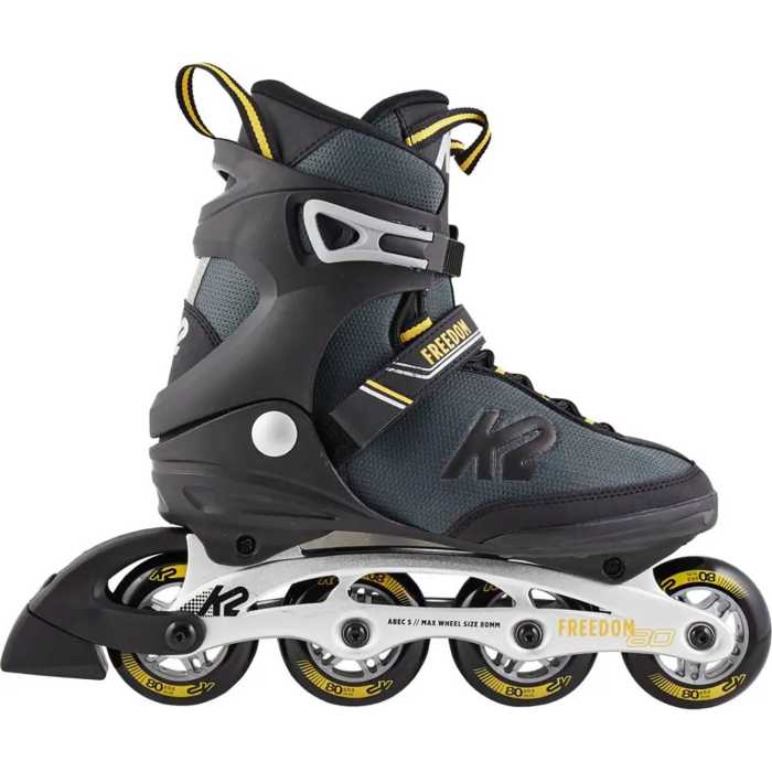 The K2 Freedom 80 inline skates. If inline skating is your preferred method of commuting and exercise, these skates are an ideal selection. Featuring a high-quality soft boot, these K2 inline skates are designed for a perfect fit and enhanced comfort. The K2 Freedom 80 tends to run small in size, so we advise selecting one size larger than your usual shoe size.