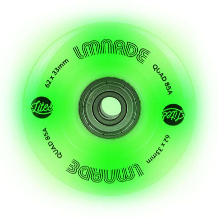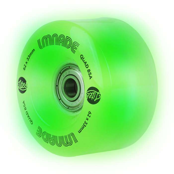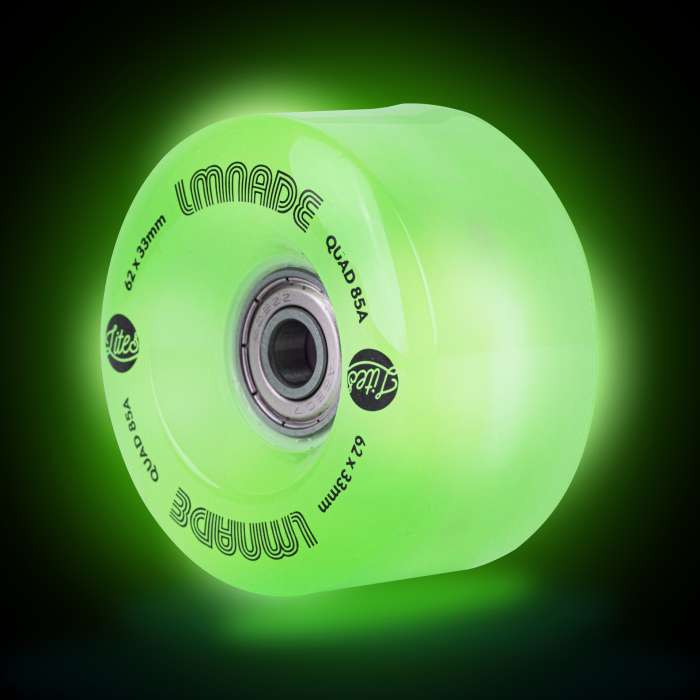These wheels provide the best of both world's using an 85a hybrid durometer makes these wheels suitable for both indoor and outdoor skating. Their 62mm diameter will provide some great traction over rougher surfaces when outdoor skating, whilst also providing great speed on smoother flooring found when skating indoors. Whether you are heading to a roller disco or out for an evening skate these flashing light up wheels will make sure you're noticed.