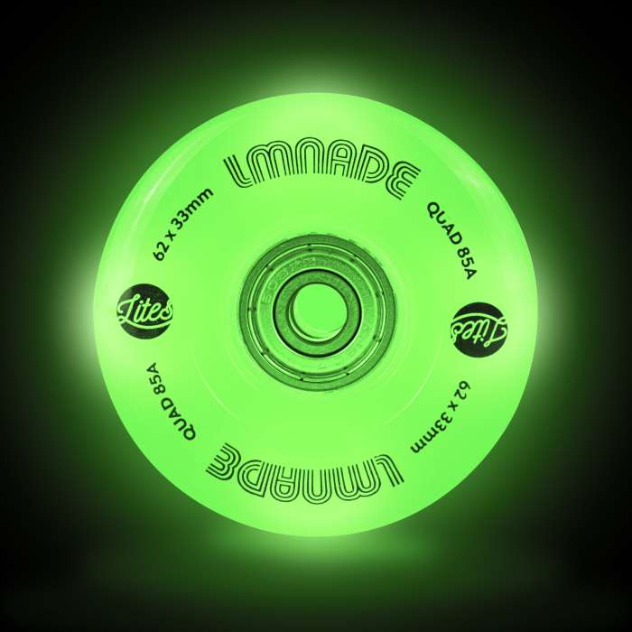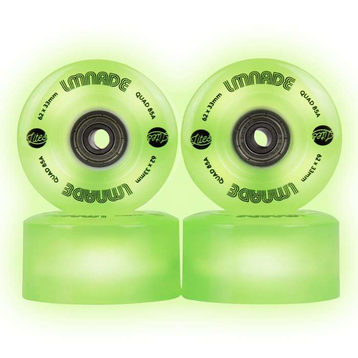 Add a flash of colour to your quad roller skates with the LMNADE Lites light-up LED skate wheels! Each wheel comes with a small mechanism which sits in between the bearings in the wheel and activates the flashing lights within the wheel as you skate.