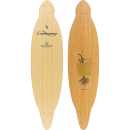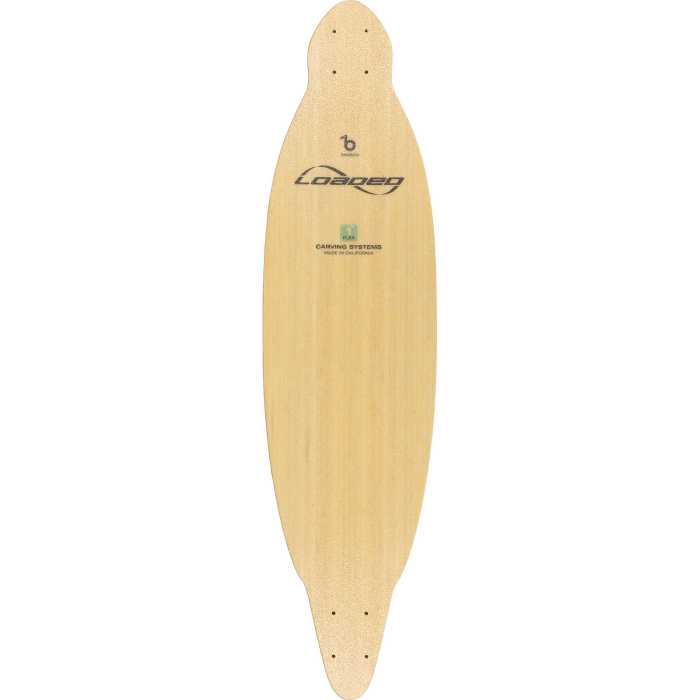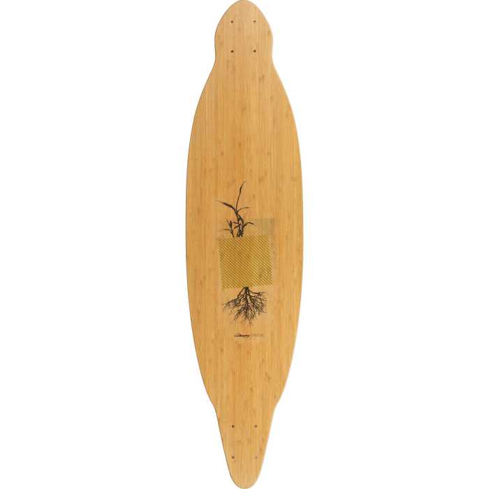 Epoxy and Tri-axle fibreglass sandwich a vert-lam Bamboo core, pressed into concave and convex cambers for liveliness, responsiveness and high energy potential. Increased torsional stiffness for higher energy return. Tapered ends and wheel cutout to eliminate wheel bite.