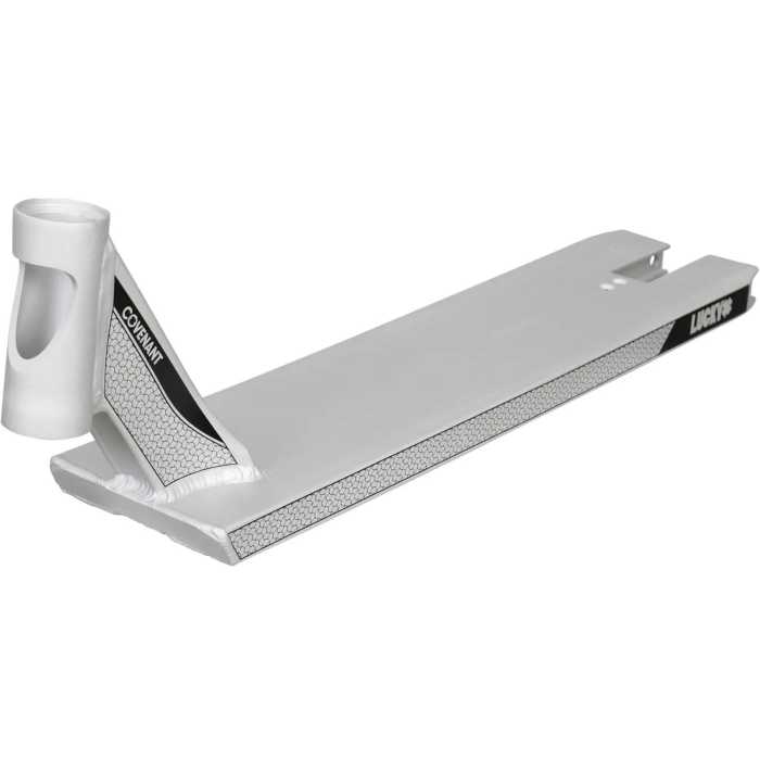 The Covenant from Lucky is a great performing stunt scooter deck, constructed from lightweight Aluminium. Focused towards skate parks riding and executes whips and flares with ease, using peg-cut configuration the shape is excellently designed to accommodate pegs for continuous grinding. Maximum wheel diameter is at 110mm. Rocking an overall length of 520mm (20.5") enables quick spins while providing ample footspace for comfortable landings.