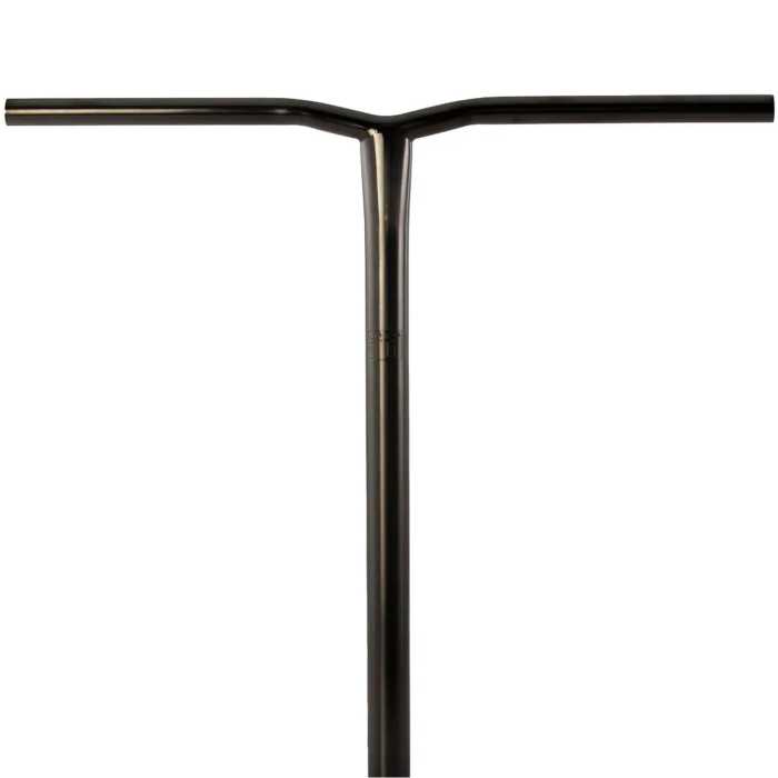 The Obsidian Kink Pro Scooter Bar by Lucky Scooters introduces an absolute top model into the world of stunt scooters. The Lucky Pro Scooter Bar is made of super light weight Titanium which is extremely durable. With the unique black chromium finish the bar has 30% less flex than regular titanium bars. It has an oversized 35mm diameter. The bar has no backsweep or upsweep and a 610mm width. This Y-shaped Lucky Scooters bar comes ready for SCS.