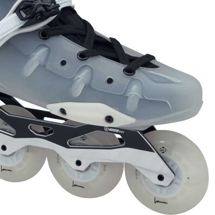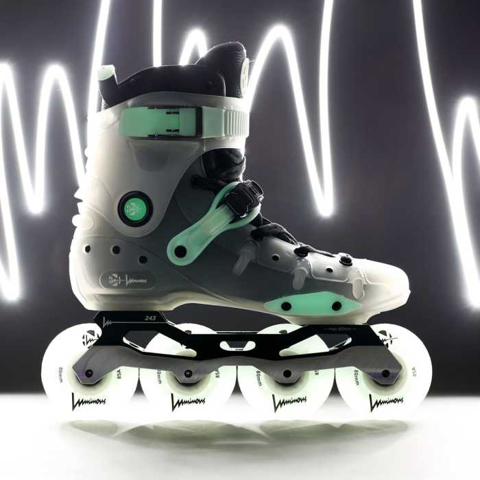 As always with Luminous, stand out at night! Stay visible and stylish with the glowing parts and light up Luminous wheels. These skates are made with either a transparent or dark shell and cuff. Two buckles and laces to find your personal fit.