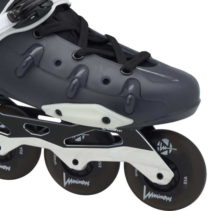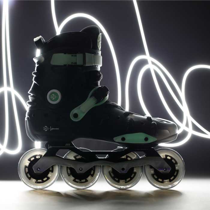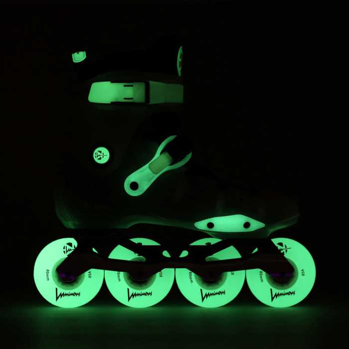 As always with Luminous, stand out at night! Stay visible and stylish with the glowing parts and light up Luminous wheels. These skates are made with either a transparent or dark shell and cuff. Two buckles and laces to find your personal fit.