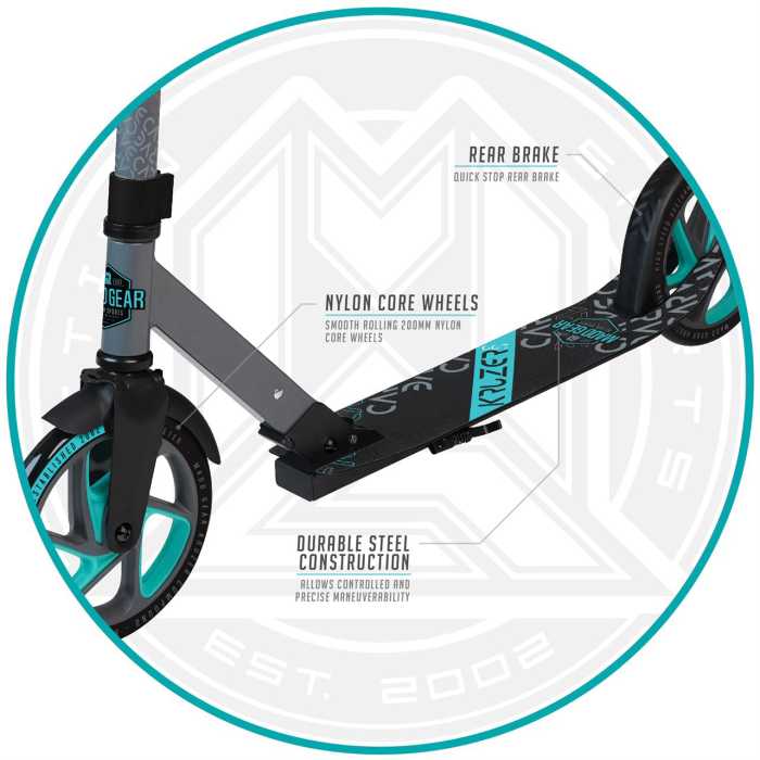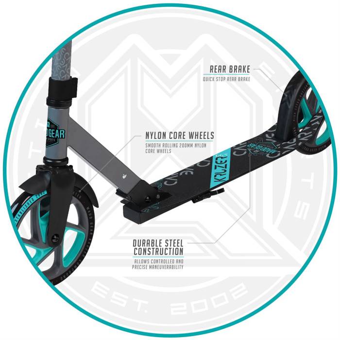 The Madd Gear Kruzer 200 Folding Scooter is the ultimate cruiser or commuter scooter with large 200mm smooth-rolling wheels. You can glide along effortlessly to keep up with the kids, cruise the boardwalk at the beach or even commute to school or college! The Madd Gear Kruzer 200 is the Kruzer 150's older sibling.