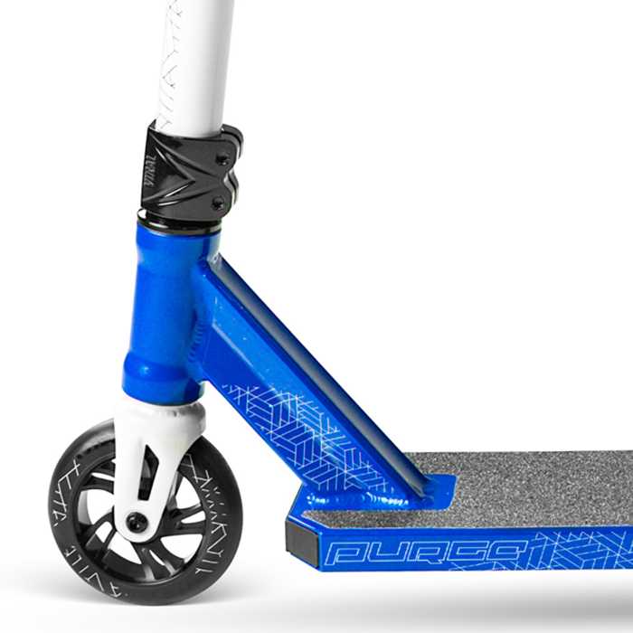 Designed with a compact 4.5" (114mm) width alloy deck, 110mm alloy core wheels, and a 24" (610mm) x 22" (559mm) low-rise T-bar, the VIRAL PURGE PRO scooter offers a balanced geometry for both street or park riding. The high-speed ABEC 11 bearings keep you rolling smoothly while the integrated sealed headset and IHC steel fork help deliver the responsiveness needed for grinds, whips, and manuals.