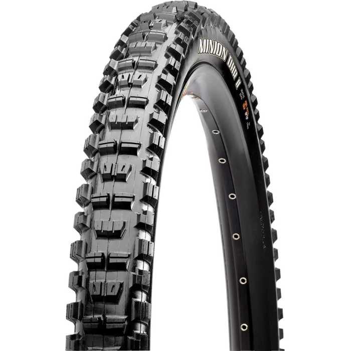 The trail version of the Maxxis Minion DHR II features the same tread pattern as its downhill counterpart, but utilises lighter weight casings. With side knobs borrowed from the legendary Minion DHF, but widened to provide more support, the DHR II corners like no other. Refined and redesigned; ready to shred any line. Redesigned, wider shoulder knobs for better cornering, Paddle-like centre knobs for improved braking, ramped and siped tread to roll fast and track straight under braking.