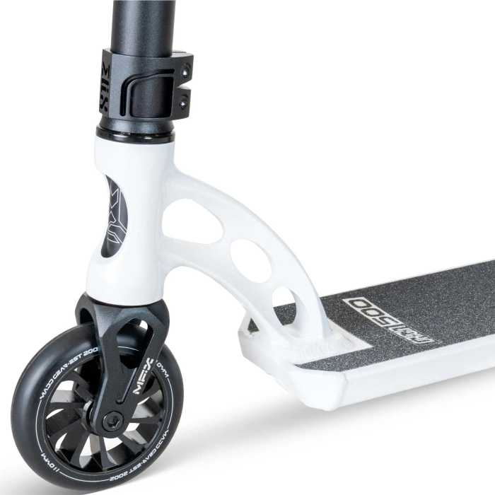 Featuring a 5" x 19.5" deck and outfitted with ultra-light 26" x 22" Aluminium handlebars, the VX Origin III PRO 500 delivers durability without the weight. The all-new TPR Trifecta grips, featuring three unique textures, ensure comfort and control to match your riding style. Roll smoothly on 110mm Turbine aluminium cores with ABEC-11 high-speed bearings and high-rebound 88A PU for speed and grip.