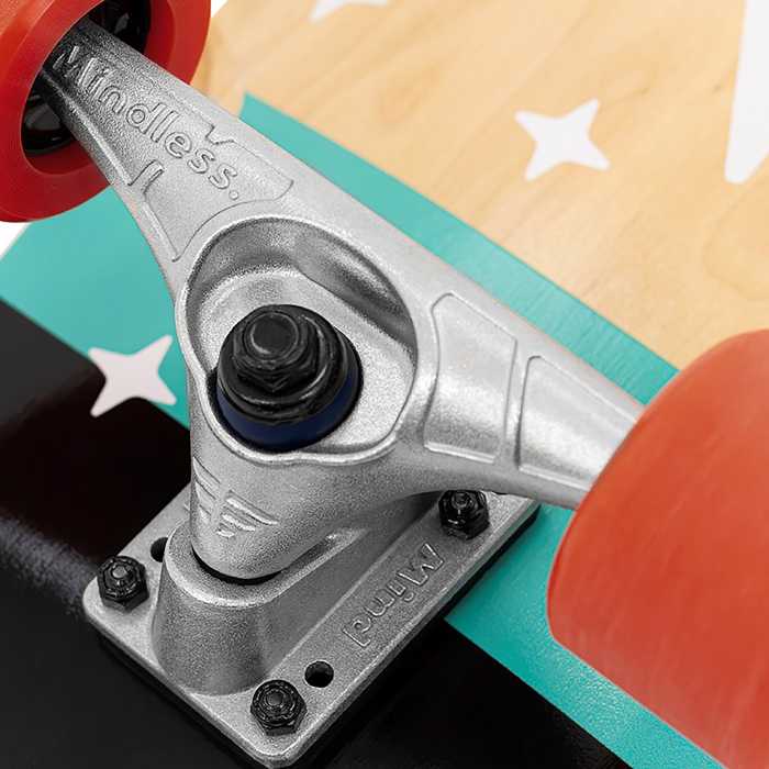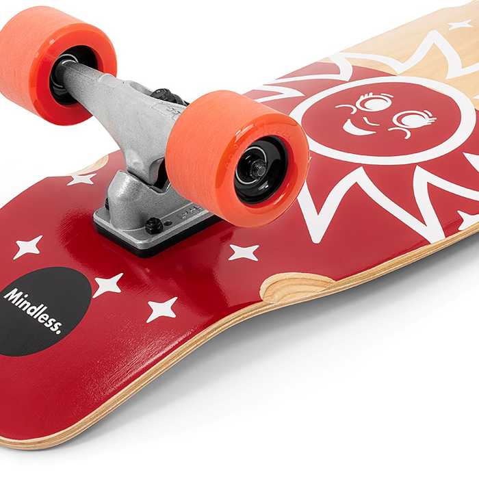 The Mindless 29.5 x 9.75” Soul surf skate is fitted with the Mindless Surf Skate trucks. These well established, highly popular, high performing trucks are what makes this board come alive. Fitted with 82a bushings the Mindless Surf Skate trucks really do give you the purest form of surfing the streets. The deck of the Mindless 29.5” Soul surf skate provides you with maximum control. With its shorter wheel base and prominent kick tail you can really lean into the board to help you master those tight cutbacks. Versatile, manoeuvrable and stable at speed this complete is an excellent choice from novice to advanced skaters looking to surf that concrete wave.