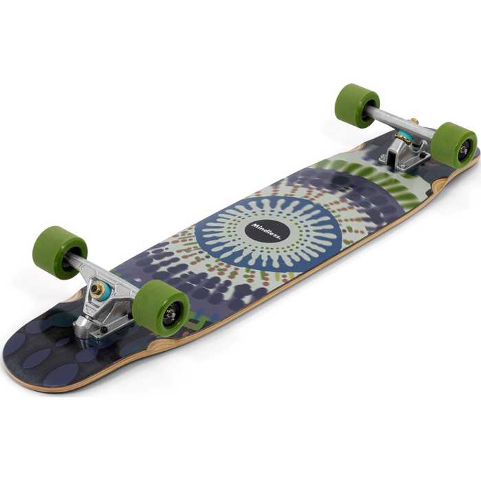 The Mindless 40 x 8.5” Tula dancer board is an ideal choice for new to the dancing scene beginners all the way up to advanced riders alike. The minimalist grip design allows you to experiment and really grow your confidence to dance and spin using the boards different contact areas. The Mindless 40” Tula dancer offers you the perfect platform for movement and self-expression! Featuring the Mindless Talisman V2 7” trucks and exclusive Mindless wheels the hardware on this complete is second to none. The Talisman V2 trucks come with a 50° angle on the kingpin and 94a Mojo formula bushings allowing for a really responsive and technical turning circle. The 66mm Mindless wheels with their moulded logo come with centre set ABEC 9 bearings to really give you that consistent smooth roll whilst you are practising your routine.