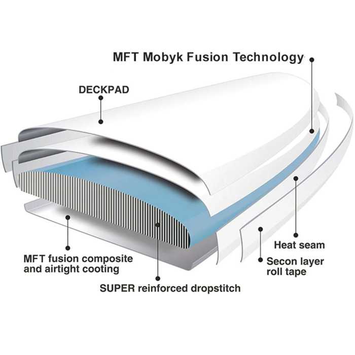 Mobyk Fusion Technology (MFT) is our inflatable SUP construction technology. MFT creates the optimum balance of performance and durability to ensure you have the best performing product that will last you the longest time.