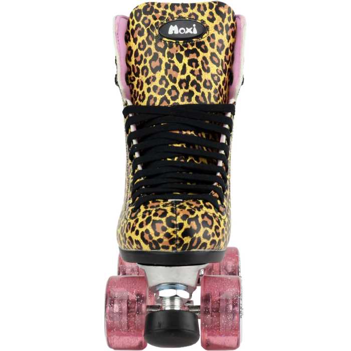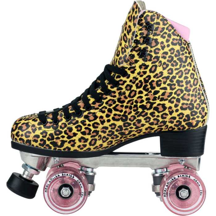 Featuring a classic leopard print high top boot that signals fashion on wheels, the Ivy Skates from Moxi are sure to catch the attention of others as you cruise on by.