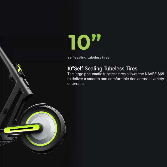 - Wheels: 10" Self-Sealing Tubeless Tyres