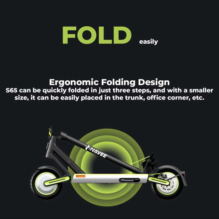 The NAVEE S65 scooter is equipped with a front light that illuminates the way ahead, making it safe to ride at night. The scooter also has rear-disc brakes and front EABS, providing riders with excellent stopping power and control.