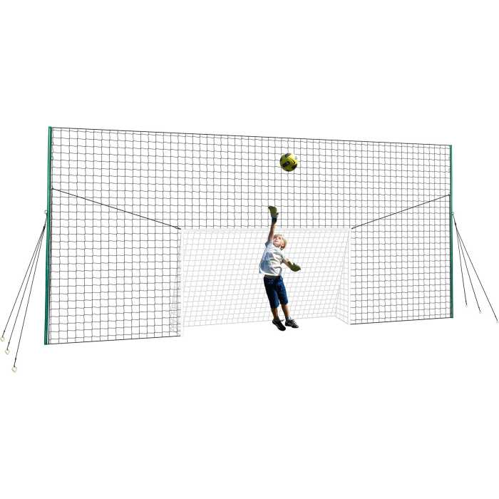 Shoot time and time again, at full power, to the most critical areas of the goal. The wall of football netting surrounds the goal and rebounds missed shots.