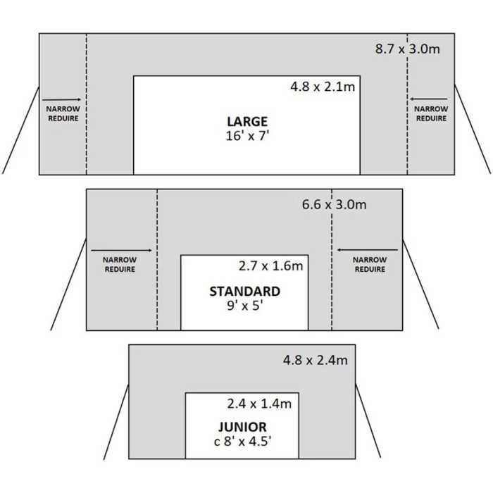 - White Goal: 2.7m x 1.6m (9’ x 5’)