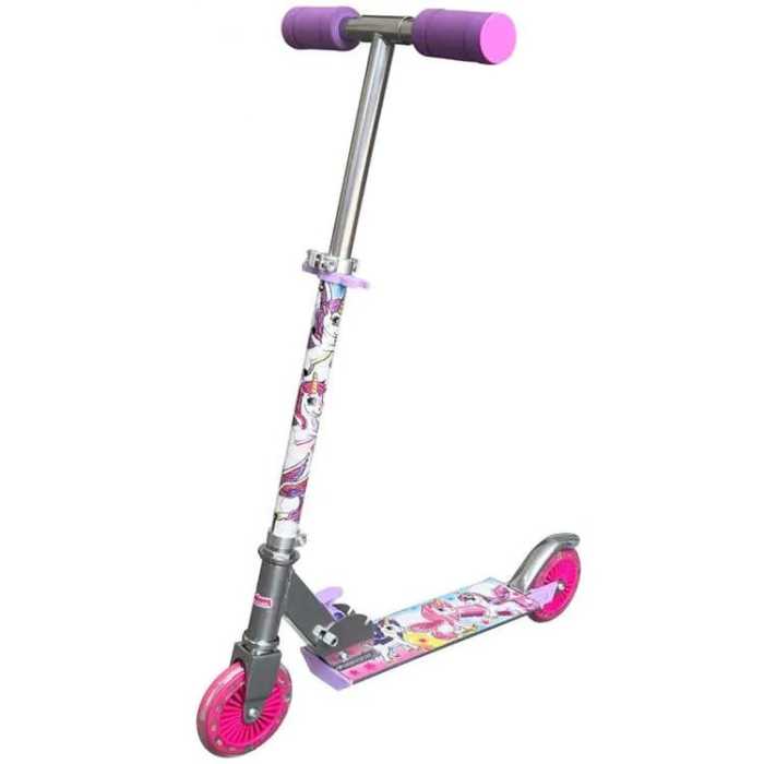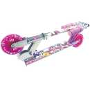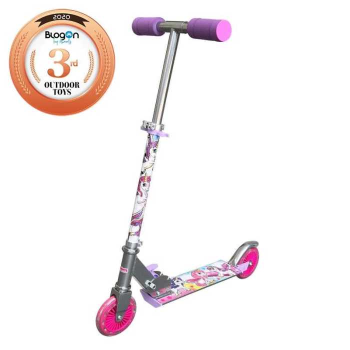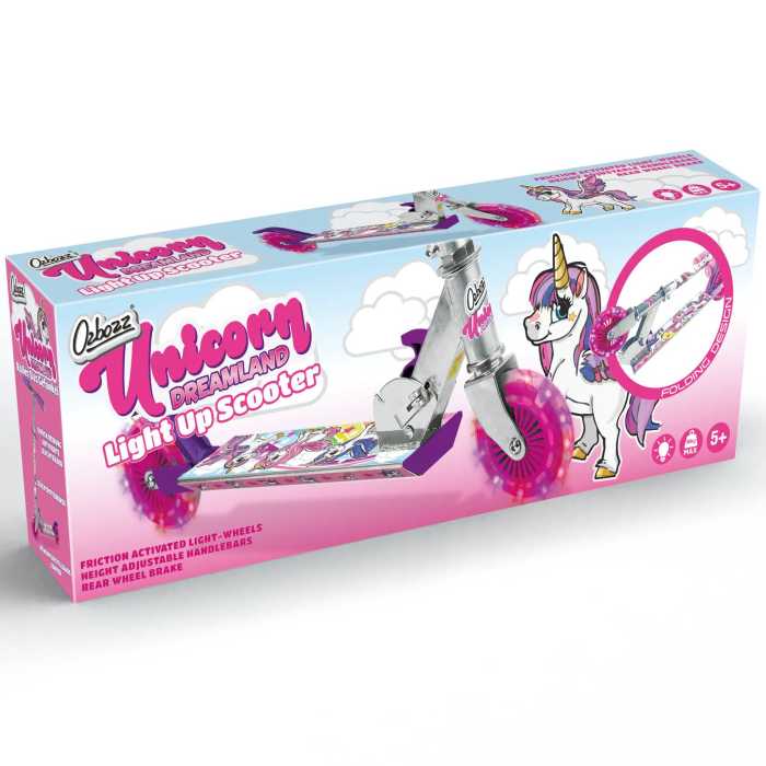 Two-wheeled scooter with light up wheels and a cool design. Start moving on the scooter and the lights in the wheels automatically trigger, illuminating the front and back of the scooter. There is also a foot brake located on the back wheel, for extra control. And finally, the scooter folds flat for easy storage and transportation.