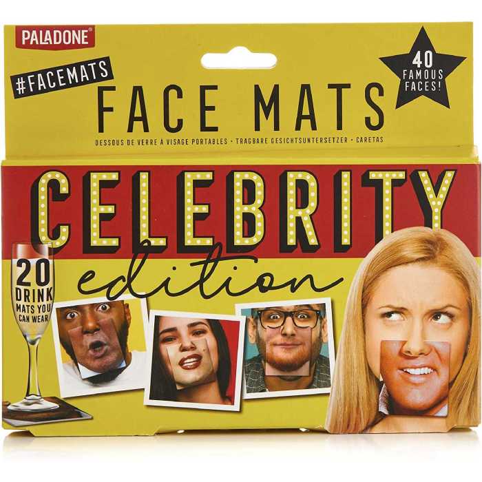 Perfect for weddings, birthday parties, stag and hen nights or just some hilarious fun at home with the family, these Celebrity Face Mats will bring fun to any occasion.