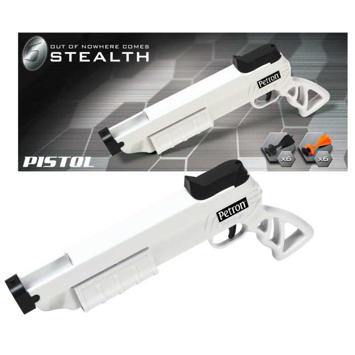 The Petron Stealth Pistol is Fun, Accurate and Safe. This set includes the Sureshot Pistol and 12 Saftey Sucker Darts. The safety trigger ensures the Pistol can only be loaded with a Petron sucker dart, and with a front and rear sight, this Crossbow is super accurate. Made from very strong plastic, it is lightweight and equally suited for shooting indoors and outdoors.