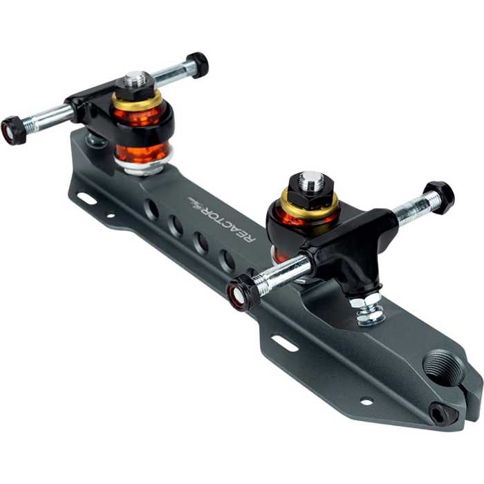 Because performance cannot be compromised at all, only the finest parts are used to complete the Reactor, including aluminium trucks with steel rod-reinforced pivot arms, solid aluminium black anodised kingpins, and durable Delrin pivot cups.