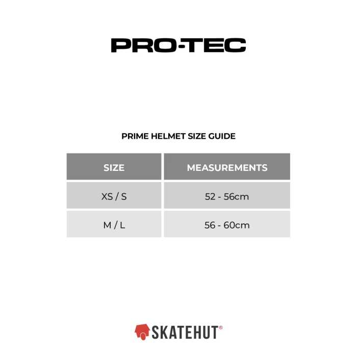 XS/S: 52cm-56cm M/L: 56cm-60cm Proven protection, proven style. A favourite across every sport, the prime Certified helmet features our classic styling with our durable ABS hard shell and EPS liner for impact protection, compression moulded pads and 11 open vents to keep you cool.
