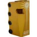 To top it off, despite being half an inch taller, increased weight was not an issue with its tapered top and base and two cutouts that removed unnecessary material and weight. There is also a brand-new feature called the Spreader-Bolt which can be used opposite of the 4 main clamp bolts to open the clamp for easy installation and removal, totally eliminating the need for the "penny trick". The SCS™ logo is placed symbolically as the "third-eye" of the Sentinel in the center of a crown of thorns representing enlightenment and salvation from the ways of the past and guarding the future of scooter design.