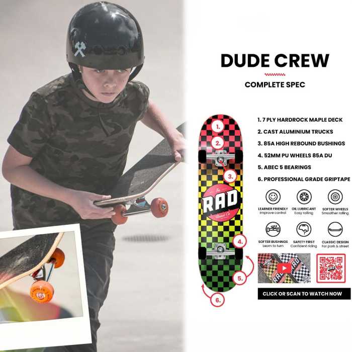 Introducing the Dude Crew Complete Skateboard, the perfect choice for kids and beginners looking to dive into the exciting world of skateboarding.