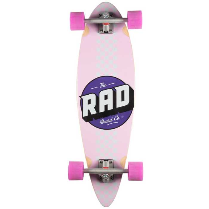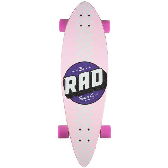 The Rad Checkers Stripe longboard features a classic directional pintail shape constructed from 8-ply maple deck for optimum performance and a freeride surf feel.