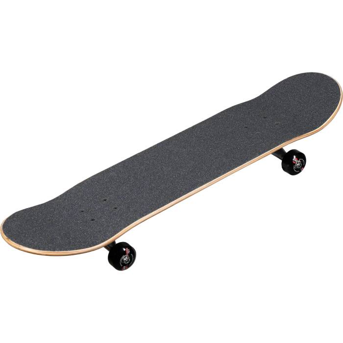 The RAD Logo Progressive skateboard serves as an excellent companion for your initial foray into the world of skateboarding. With this versatile board, you can effortlessly transition from street skating to ramp tricks. It features a double kick-tail deck, enabling you to execute tricks from either end of the board.
