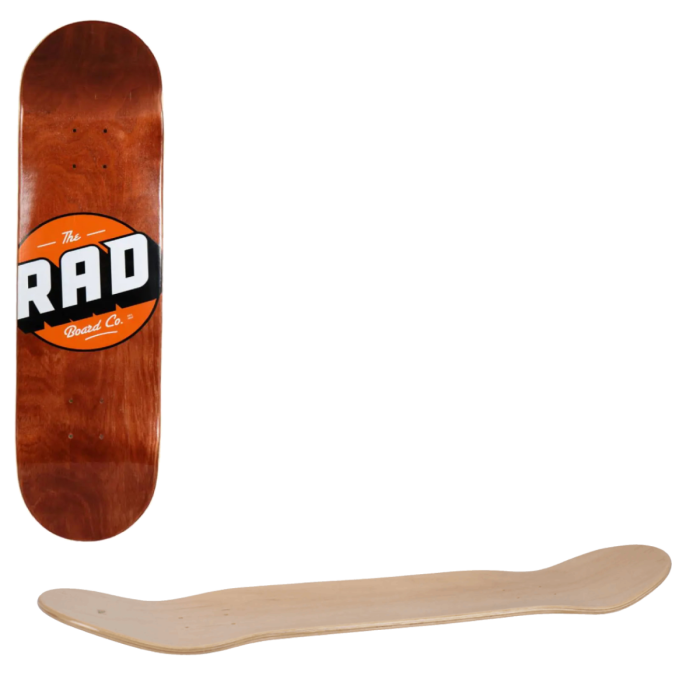 The RAD Solid Logo Skateboard Deck is an affordable option, handcrafted from premium North American maple, a robust material known for its durability. Featuring a 7-ply construction, this deck is designed to endure the most challenging tricks.