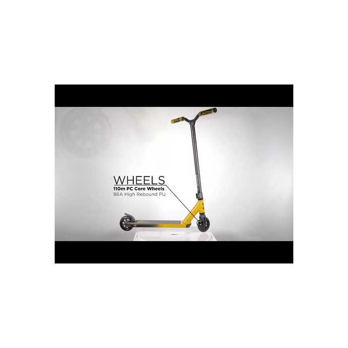 The Rampage R1 stunt scooter is a great entry level stunt scooter. Ideal for beginners to drop into scootering and develop their skills. It has a great spec and has plenty of deck space for mastering technique. The R1 comes with gusseted Y bars, High tensile fork, IHC compression, and larger 110mm super high rebound wheels.