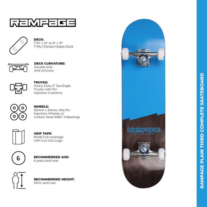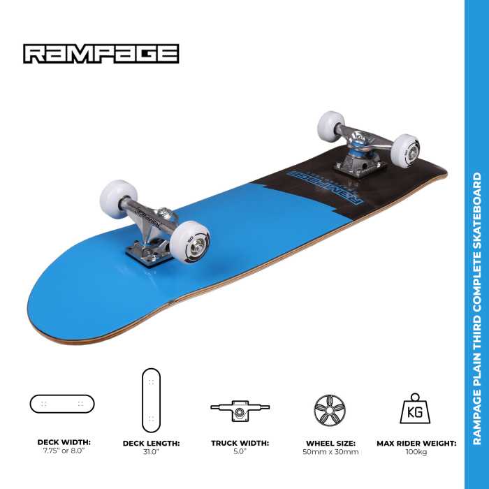 Rampage Plain Third Complete Skateboard - Blue/Black 7.75''