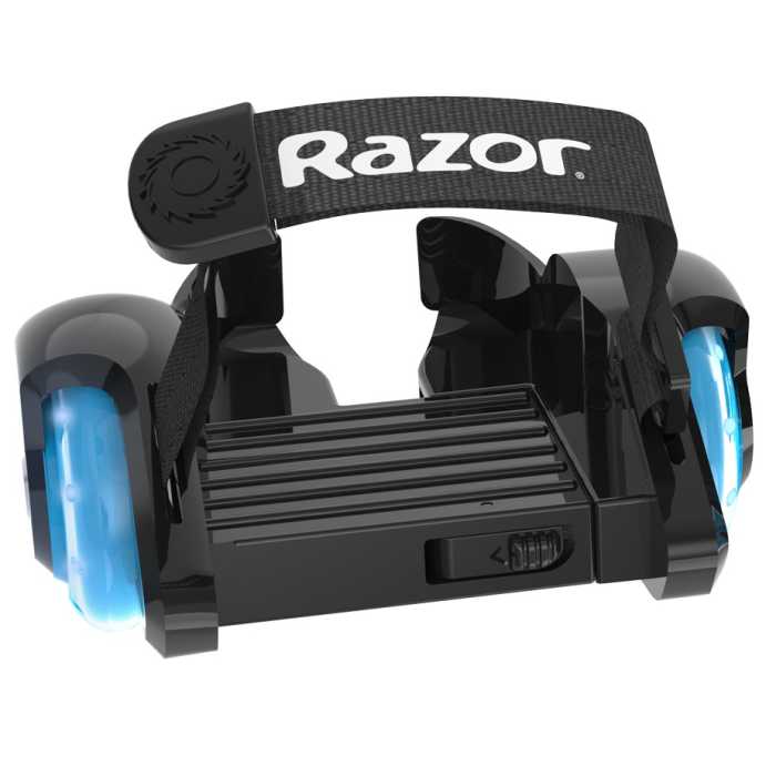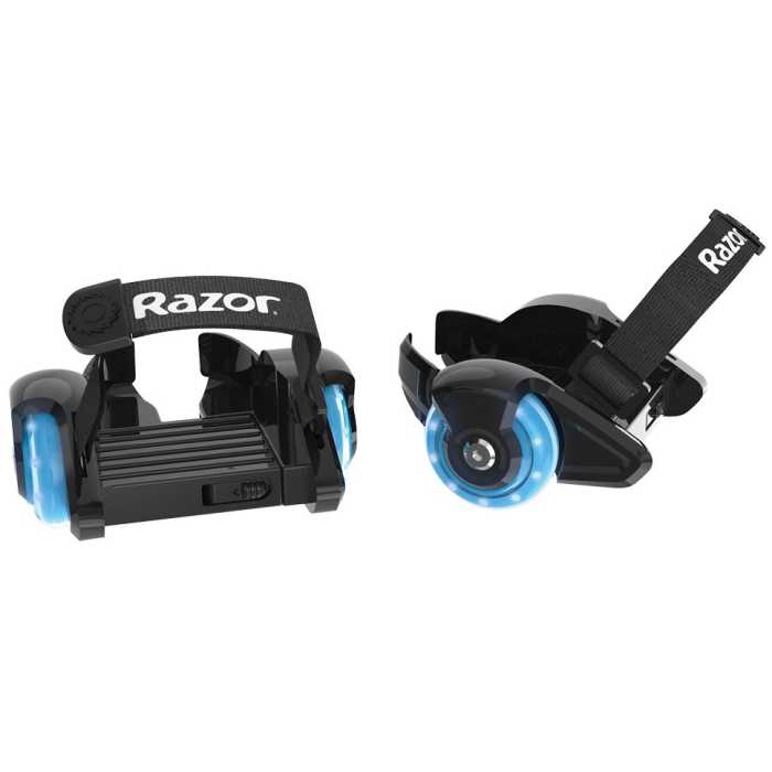 Get ready to roll! The Razor Jetts Mini Heels Wheels quickly turn any pair of shoes into a blur of glowing LED wheels and awesome gliding action. They feature Razors ‘Quick Click’ hook and loop strap system that makes it easy to get the perfect fit of shoes from junior 11 to adult 11. Just step in, strap down and take off with an awesome new way to roll that is small in size, but big on fun. With bright LED lights that add a flash of fun to your ride.