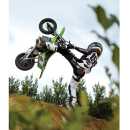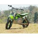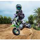 Inspired by Jeremy McGrath the "King of Supercross.", who has won the most supercross titles ever, racking up seven Supercross championships in his career. The SX350 scales Jeremy’s iconic bike down to size for younger riders. Its complete with authentic McGrath graphics and MX-frame geometry. It carries riders at speeds of up to 14 mph with up to 30 minutes of continuous use. It features an adjustable-angle, riser-style handlebars with a twist grip throttle and a hand-operated rear brake. It also features spoked wheels with 12” pneumatic knobby tyres, a retractable kickstand, folding metal foot pegs and comes with 2 x 12-volt rechargeable batteries and charger.