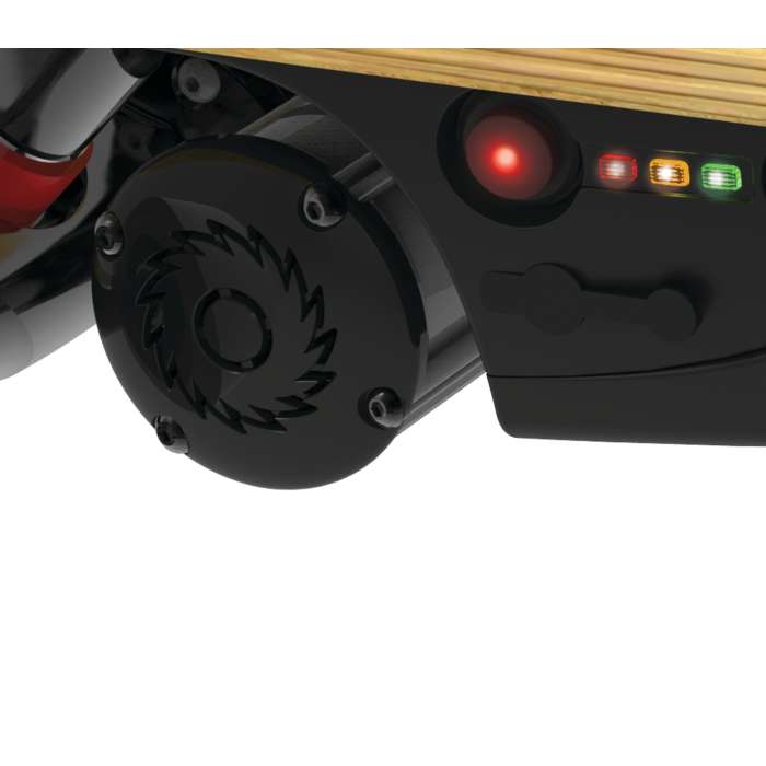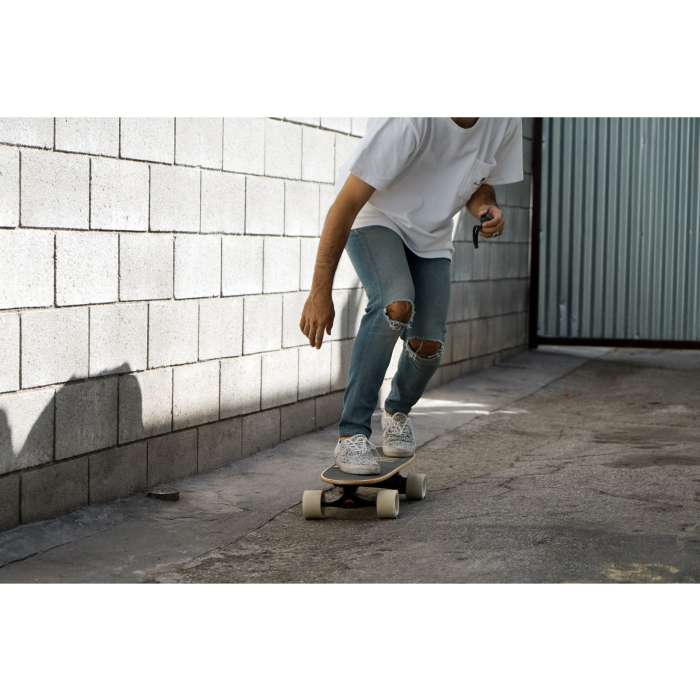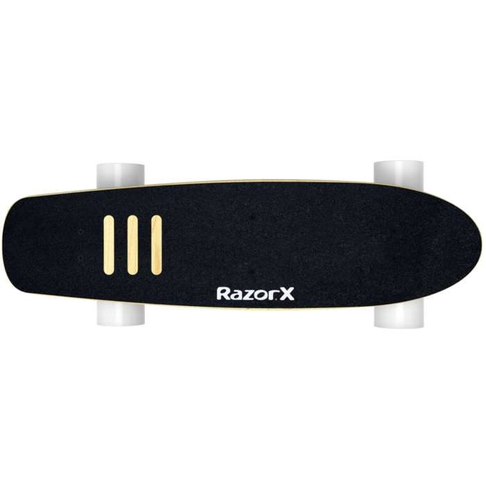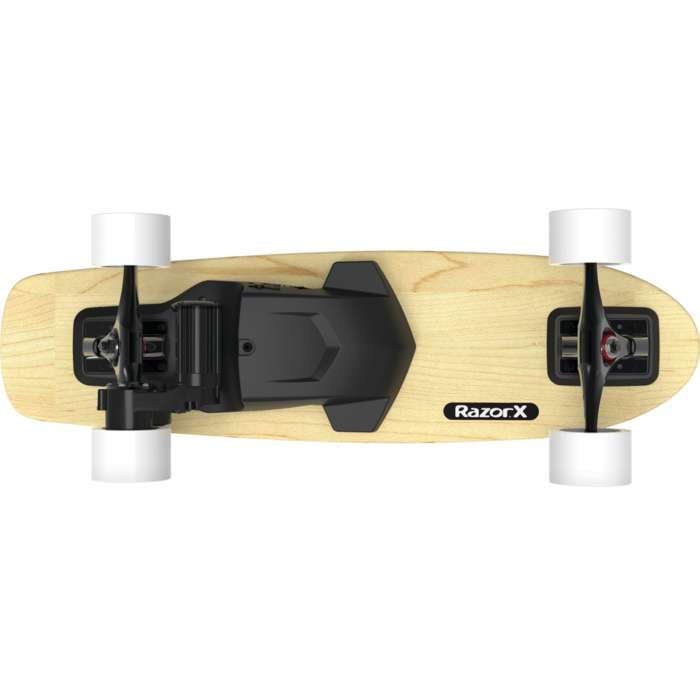 Put fun on cruise with the lithium-ion-powered Razor electric skateboard made to zoom along. The X-Cruiser is a skateboard with an electrifying kick, putting the control of a 125-watt, geared motor in the palm of your hand and under your feet. This complete cruiser uses an innovative geared rear-wheel drive motor and a 22-volt lithium-ion battery to deliver electrifying skate action at speeds up to 10 mph for up to 40 minutes of continuous use. Hit your perfect cruising velocity with the variable-speed control on the digital, hand-held wireless (2.4 GHz) remote (requires 2 x AAA batteries) with replaceable wrist strap for variable-speed control of the electrifying lithium-ion-powered carve-and-turn action. The 75.4 cm long, 5-ply maple deck and custom, reverse kingpin trucks deliver a smooth, responsive ride – perfect for cruising, while perforated grip tape and ground-gripping 80 mm, 80a street urethane wheels will keep you firmly in control of your board. Razor’s new kick-start, geared, rear-wheel-drive motor technology is virtually maintenance free, meaning you won't have to worry about alignment issues, chain or belt. Comes with a 22V lithium-ion rechargeable battery pack and charger.