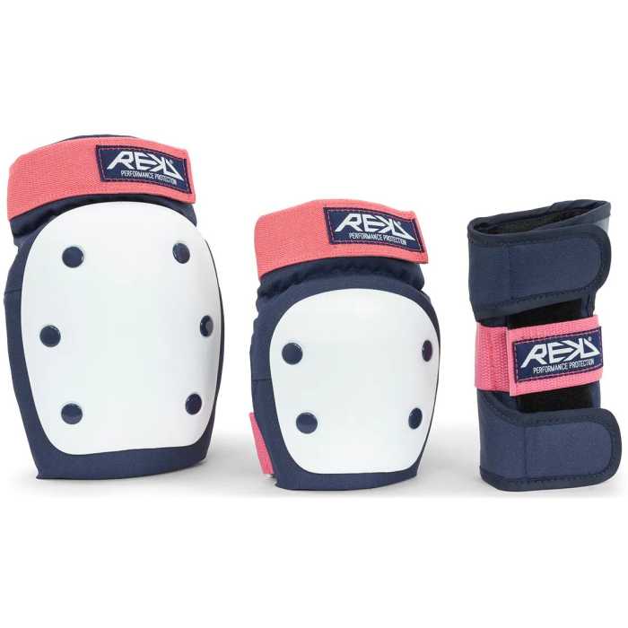 REKD Protection's Heavy Duty Triple Pad Set provides complete protection for knees, elbows and wrists. Offering an affordable pad set that features hard-wearing ramp style impact caps to protect against rough surfaces. The dual splint wrist guards feature two separate splints to help support both top and bottom of the wrist, as well as 360° wrap protection and triple straps for a snug, secure fit.