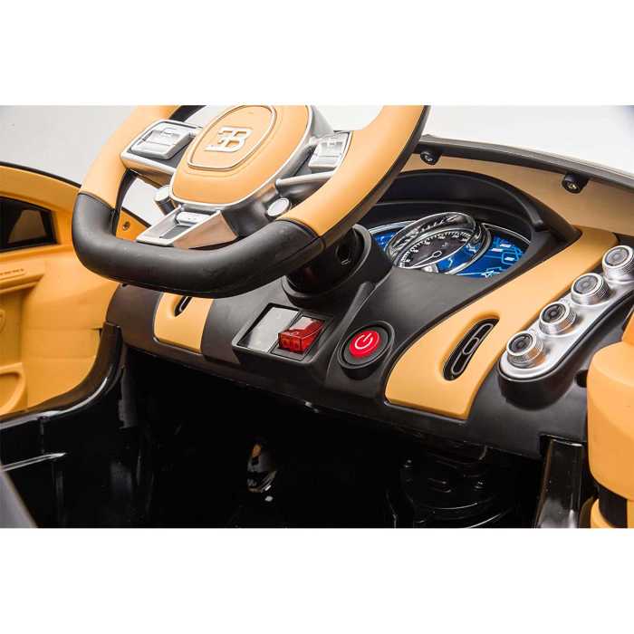 Based on the Bugatti Chiron this officially licensed ride-on comes with a USB music input interface for MP3 by the steering wheel and a foot pedal accelerator.