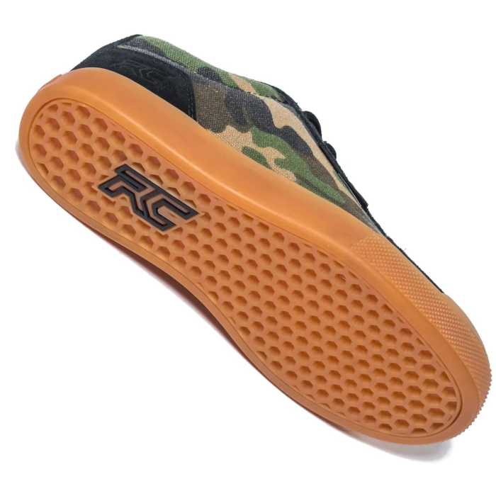 The dirt can have a powerful grip on the mind, like an addiction manifesting itself until all other thought is pushed away. Developed with our dirt jump, slopestyle and bmx athletes who value pedal feel and compliance above all else, the Vice introduces our RC Fuzion outsole. An inverse, gradient diameter hexagon pattern designed to bring the pedal closer to the rider. Sloped-angle inverse hexagons, varying in diameter from 9mm at the toe and heel to 7mm at the pedal contact area, allow the pedal to "inject" into the outsole for unrivaled sensitivity. Knowing your vices brings you closer to your obsession. Accepting them makes you invincible.