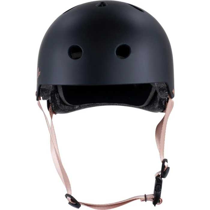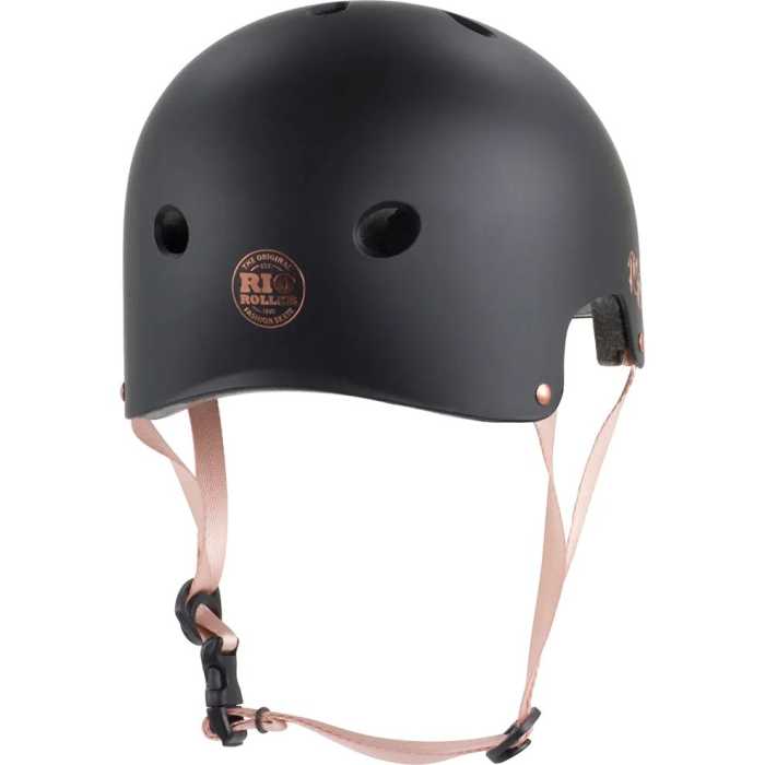 A touch of class to a Rio Roller staple helmet, released to compliment the Rio Roller Rose Quad Skates. As always, top quality certified protection, and while usually available in bold and bright colours the Rose series now offers a touch of subtle styling, metallic Rose Gold logo and accents as well as a pale rose coloured chin strap set of this helmet.