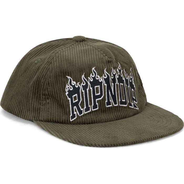 Made from a soft and lightweight corduroy fabric this 5-panel snapback hat features an embroidered RIPNDIP logo at the front, a rear snapback adjuster and a flat visor.